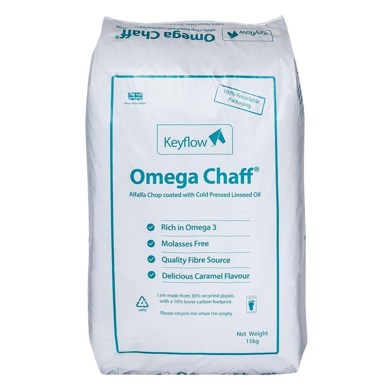 Keyflow Omega Chaff is a complementary chopped fibre feed for equines that can be fed as part of a normal balanced diet.
